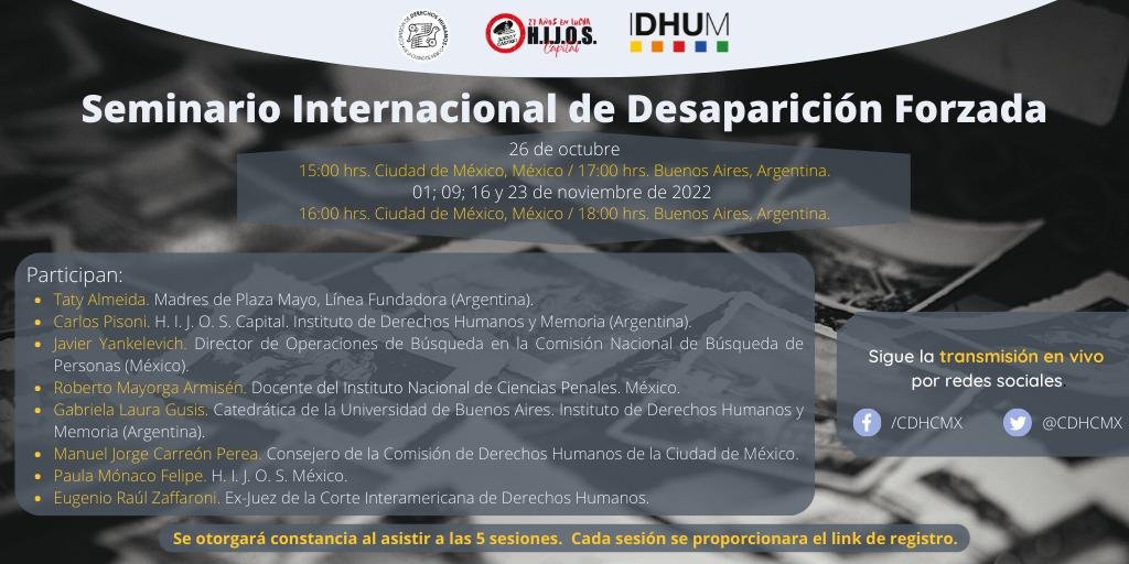 El 26 de octubre comienza el Seminario organizado por la Comisión de Derechos Humanos de la Ciudad de México y el Instituto de Derechos Humanos y Memoria (IDHUM – H.I.J.O.S. Capital, Argentina).